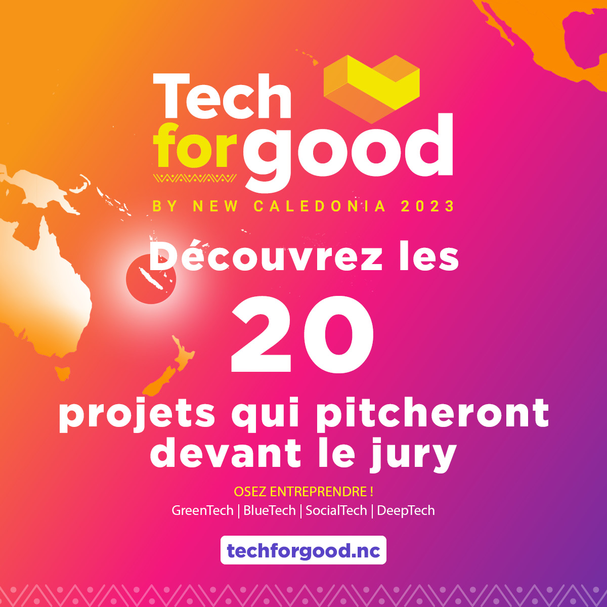Sur les 59 candidatures qui ont marquées cette 3ème édition « Tech for Good By NC 2023 », 20 projets ont été retenus pour être présentés devant le jury !